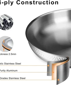 imarku Stainless Steel Frying Pan – 3 Ply Steel Skillet – Professional Grade Pans for Cooking – 12 Inch Stainless Steel Cooking Pan Hammered Surface