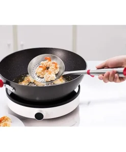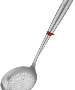 SUPOR Strainer Stainless Steel Colander Serving Spoons, Ladle Set Colander with Red Anti-scald Silicone Ring Kitchen Tool 14.4″x 4.8″ (Silver) Skimmer Ladle