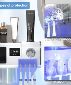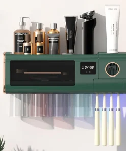 TINS UV Sanitizer Toothbrush for Bathroom, UV Sanitizer Toothbrush Holder, Wall Teeth, Automatic Toothpaste Dispenser, Toothbrush Organizer, USB Charging, 2000 mAh Battery-Green