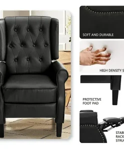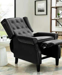 BALICHUN Leather Recliner Chair, Black Accent Chair, Wingback Push Back Recliner Chair for Living Room or Bedroom, Massage Recliner Chair for Adults, Small Single Reclining Sofa Lounge (Black)
