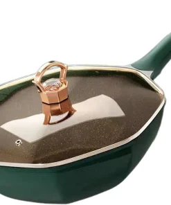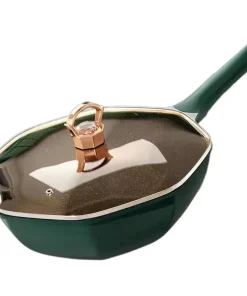 YOSELF Generic Octagonal Frying Pan Woks Nonstick Pan Cooking Saucepan for Picnic Outdoors Home, Green, 32cmx10cm