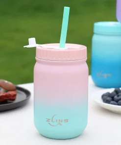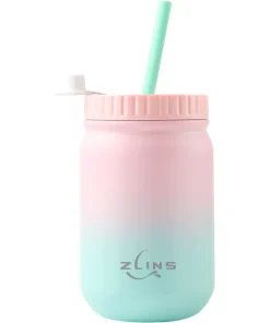 ZLINS Cup with Straw and Lid,Iced Coffee Travel Mug,Stainless Steel Drinking Tumbler,Insulated Reusable Metal Cup,Hot Cold for Smoothie, Milkshake,Cocktails,14OZ(Pink/Blue)