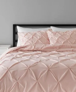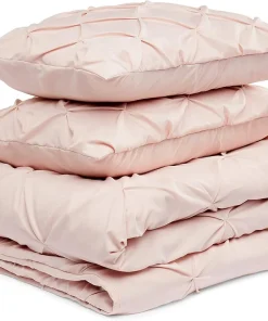 Amazon Basics Light-Weight Microfiber Pinch Pleat Duvet Cover Set – 3 Pieces, Full/Queen, Blush Pink, Geometric