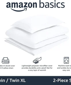 Amazon Basics Lightweight 2 Piece Microfiber Duvet Cover Set with Zipper Closure, Twin/Twin XL, Bright White, Solid
