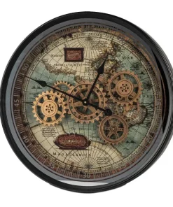 Wall clock WORLD MAP ANTIQUE with moving gears D. 60cm Formano