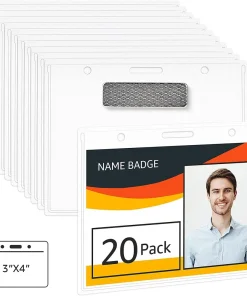 Amazon Basics Magnetic Badge Holder – Horizontal, 20-Pack