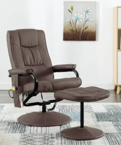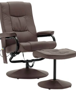 vidaXL Massage Recliner with Ottoman Brown Faux Leather
