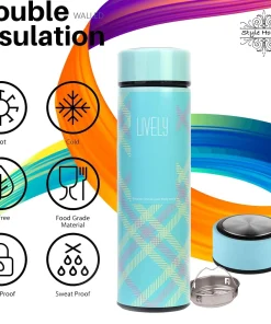 Style Homes Double Wall Vacuum Insulated Stainless Steel Thermos BPA Free Travel Water Bottle 480ml – Hot & Cold for 12 Hours, Sky Blue (Levelly)