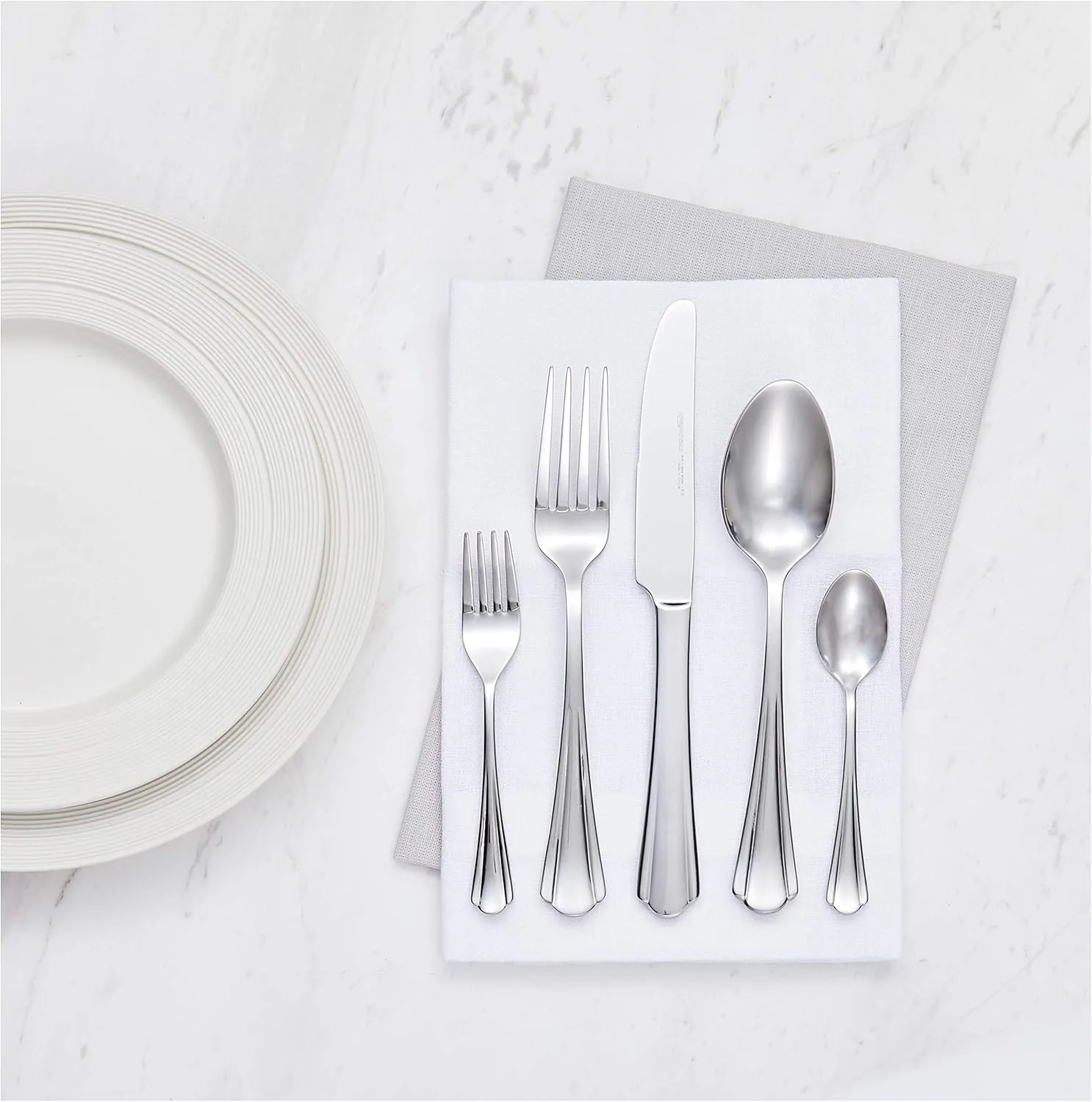 - 20-piece flatware set, service for 4; includes 4 salad forks, 4 dinner forks, 4 teaspoons, 4 dinner spoons, and 4 dinner knives