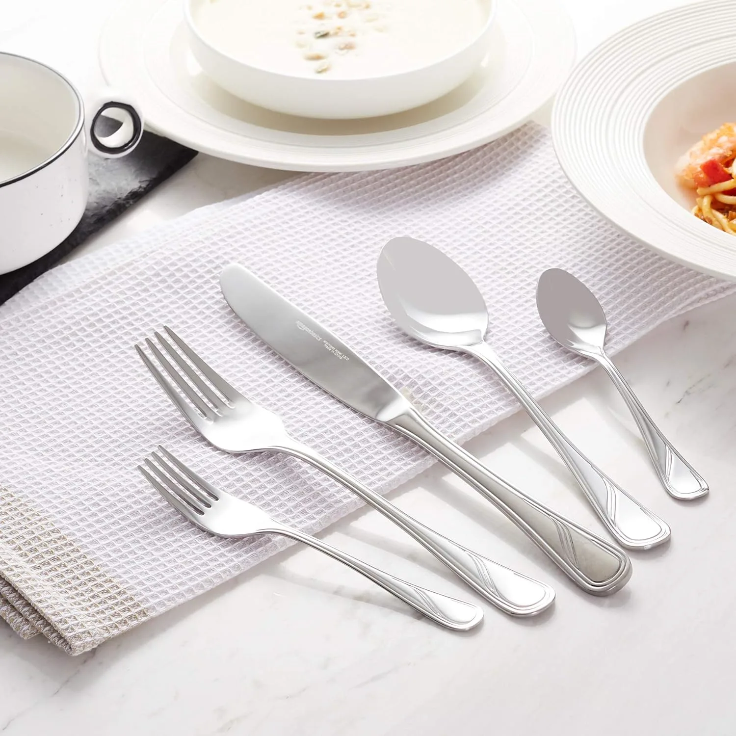Be the first to review “Amazon Basics 20-Piece Stainless Steel Modern Finish Flatware Set, Service for 4” Cancel reply