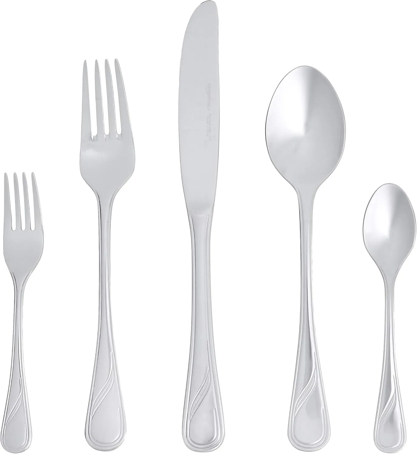 Amazon Basics 20-Piece Stainless Steel Flatware Set with Scalloped Edge, Service for 4
