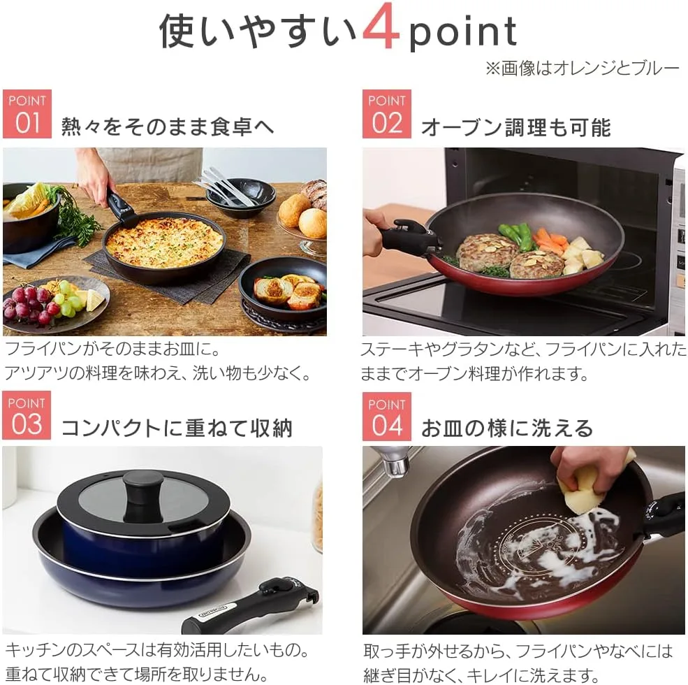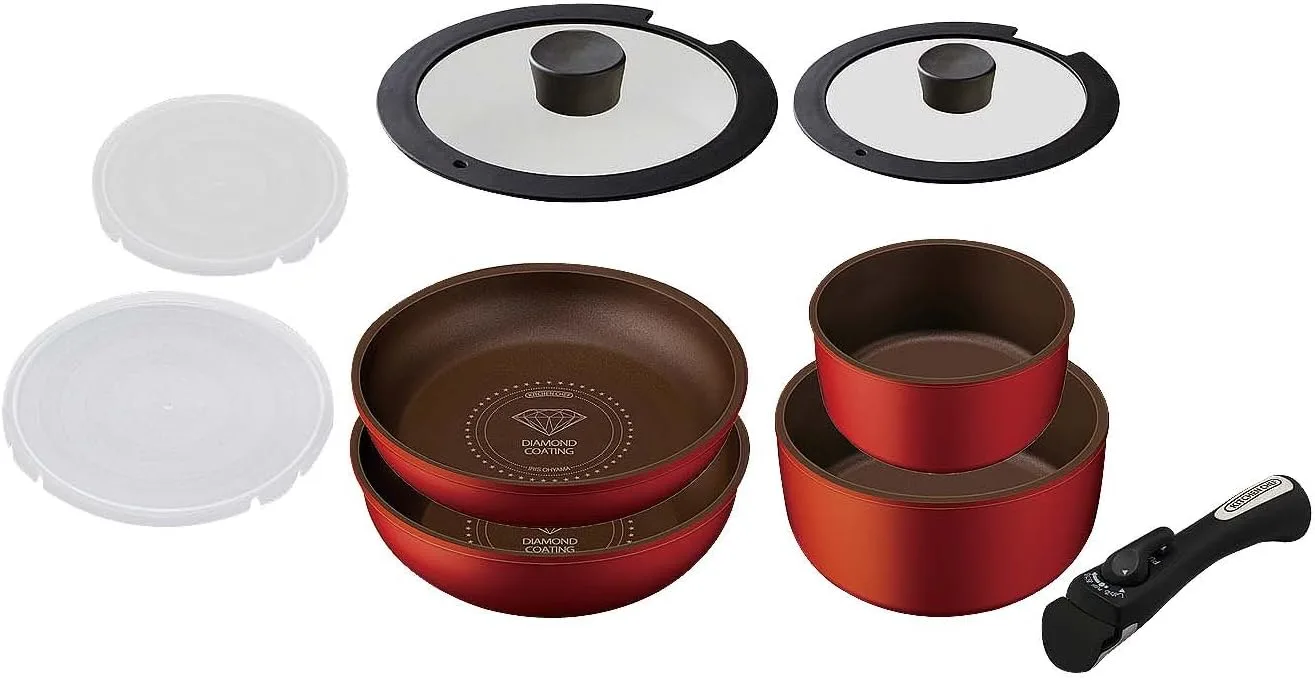 Iris Ohyama “Diamond – Coated” IH – Compatible Frying Pan Set with Removable Handles (Orange)