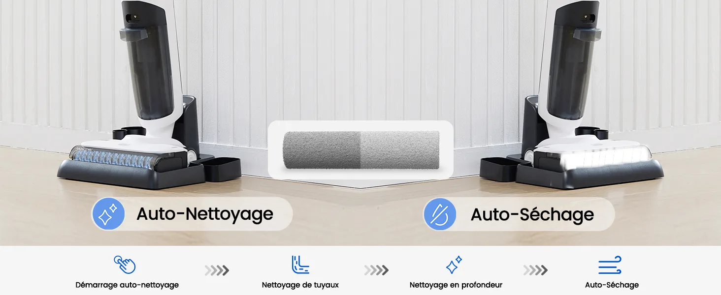 • 【SELF-CLEANING & SELF-DRYING】F10 is able to vacuum, clean and wash, a self-cleaning button, the roller brush is dried by air drying the fan, your perfect one-step cleaning assistant, let your hands free.