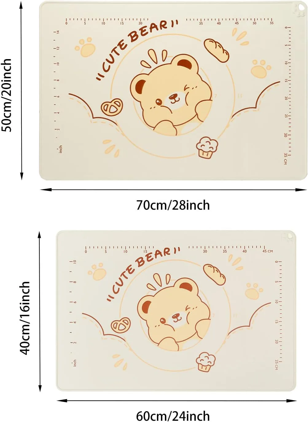 - 💟【PERFECT SIZE & SCALE】 This silicone mat measures 28″*20″ and has millimeter scales on its surface, making it easy for you to measure and cut dough. The size is suitable for most work and surface in the kitchen or tables.
