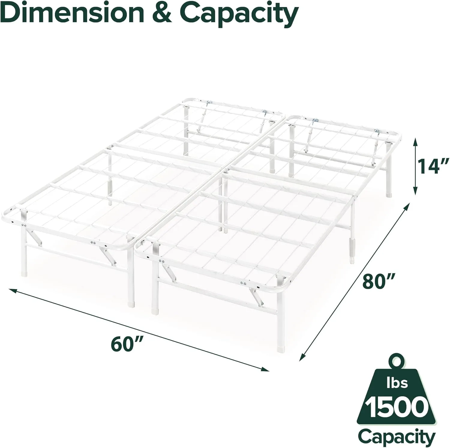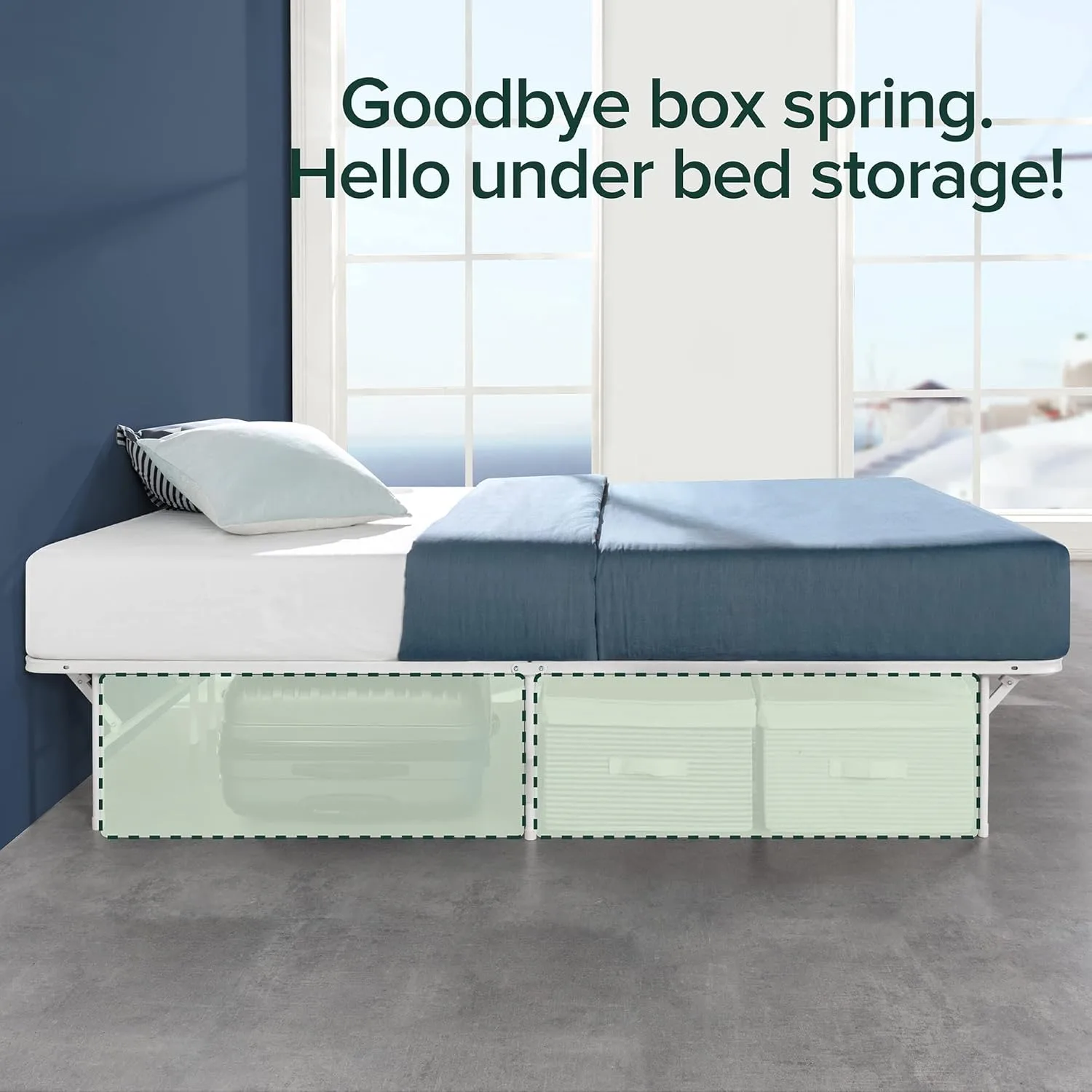 ZINUS SmartBase Tool-Free Assembly Mattress Foundation, 14 Inch Metal Platform Bed Frame, No Box Spring Needed, Sturdy Steel Frame, Underbed Storage, White, Queen